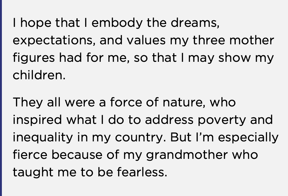 Veronica, Dr. Mwansa, Ana Maria, and countless moms across the globe are working tirelessly to create a safer, kinder, and more just world for their children to inherit. They show us that inspiration doesn’t just come from within—it’s also handed down through generations. Learn more about them and other mothers doing remarkable work here. To those who we wouldn’t be here without, Obama Foundation, May 9, 2019